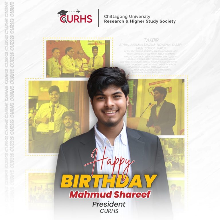 Happy Birthday to Mahmud Shareef!  Our Mahmud Shareef, The president of the Chittagong University Research and Higher Study Society (CURHS) is a beacon of inspiration, guiding us with wisdom and compassion. Mahmud’s dedication, passion, and leadership have brought our community…