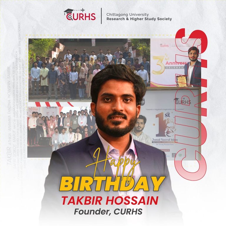 Happy Birthday to Takbir Hossain !!! Our very own Takbir Hossain is the Founding President of the Chittagong University Research and Higher Study Society (CURHS). From the very beginning, those who want to bring noteworthy changes in the research and…