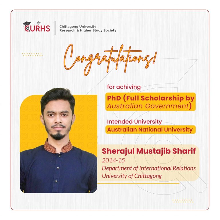 #𝗛𝗲𝗮𝗿𝘁𝗶𝗲𝘀𝘁_𝗖𝗼𝗻𝗴𝗿𝗮𝘁𝘂𝗹𝗮𝘁𝗶𝗼𝘀 to Sherajul Mustajib Sharif for his fully funded enrollment at Australian National University as PhD candidate (full scholarship by Australian Government) Chittagong University Research and Higher Study Society (CURHS) would like to take this opportunity to felicitate Sherajul Mustajib…